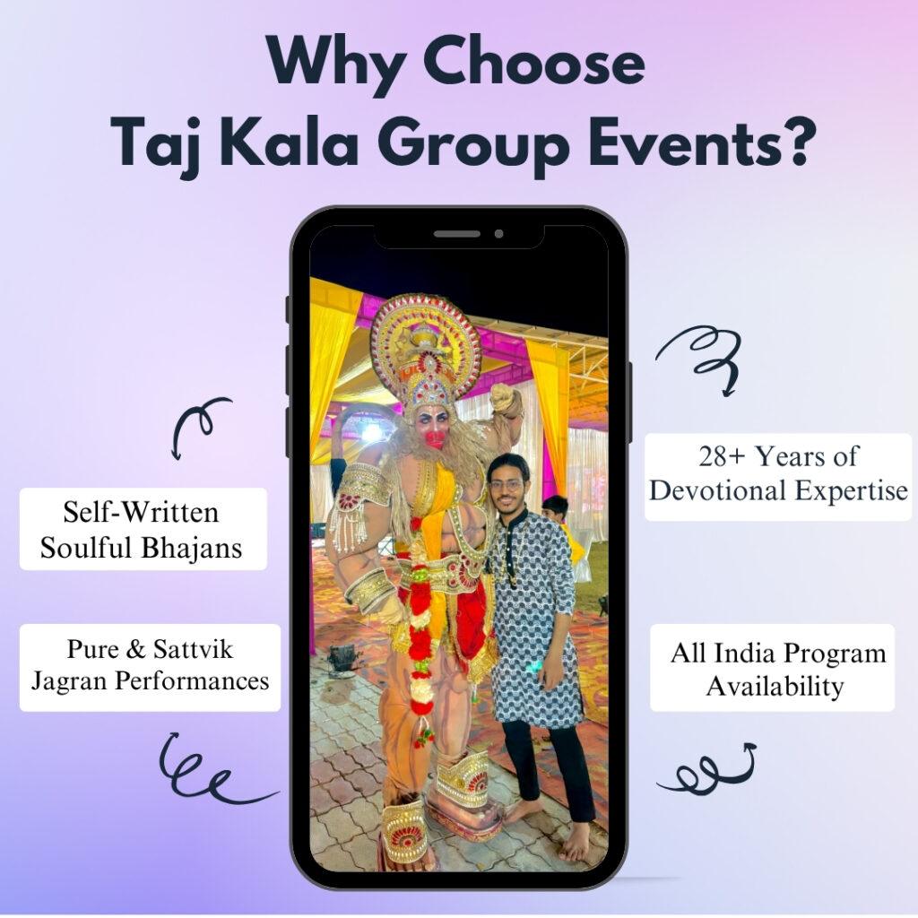 Taj Kala Group Events, founded by Trilok Singh and managed by Suryansh Gahlot, is the best Jagran party in Agra, known for being a creative Jhanki art group and expert event planner for Devi Jagran, Mata Ki Chowki, and Bhajan Sandhya. We bring devotion and celebration together with soulful bhajans and beautifully organized spiritual events.