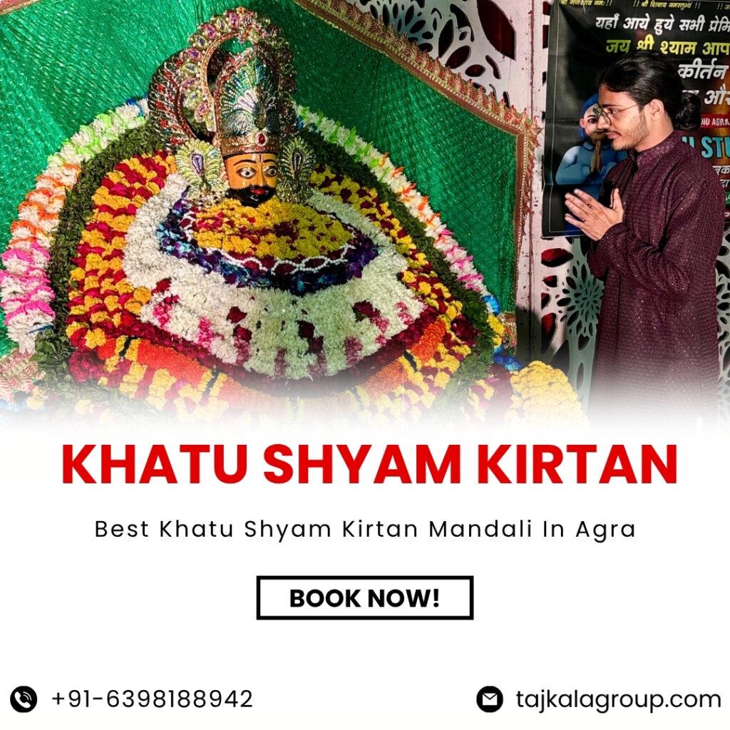 Taj Kala Group Events brings together some incredibly talented Khatu Shyam bhajan singers along with a devoted Khatu Shyam Kirtan mandali in Agra, creating performances that are both soulful and full of energy. Each Khatu Shyam Sandhya party is thoughtfully organized, featuring live bhajans, heartfelt devotional rituals, and professional stage setups, ensuring that every celebration is not only memorable but also spiritually uplifting.