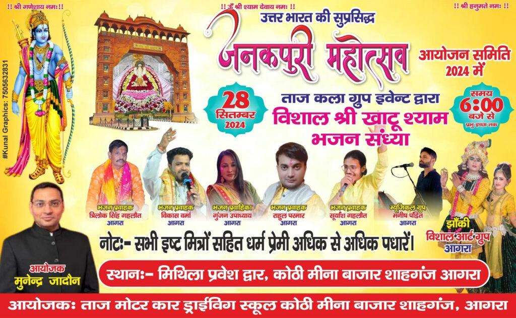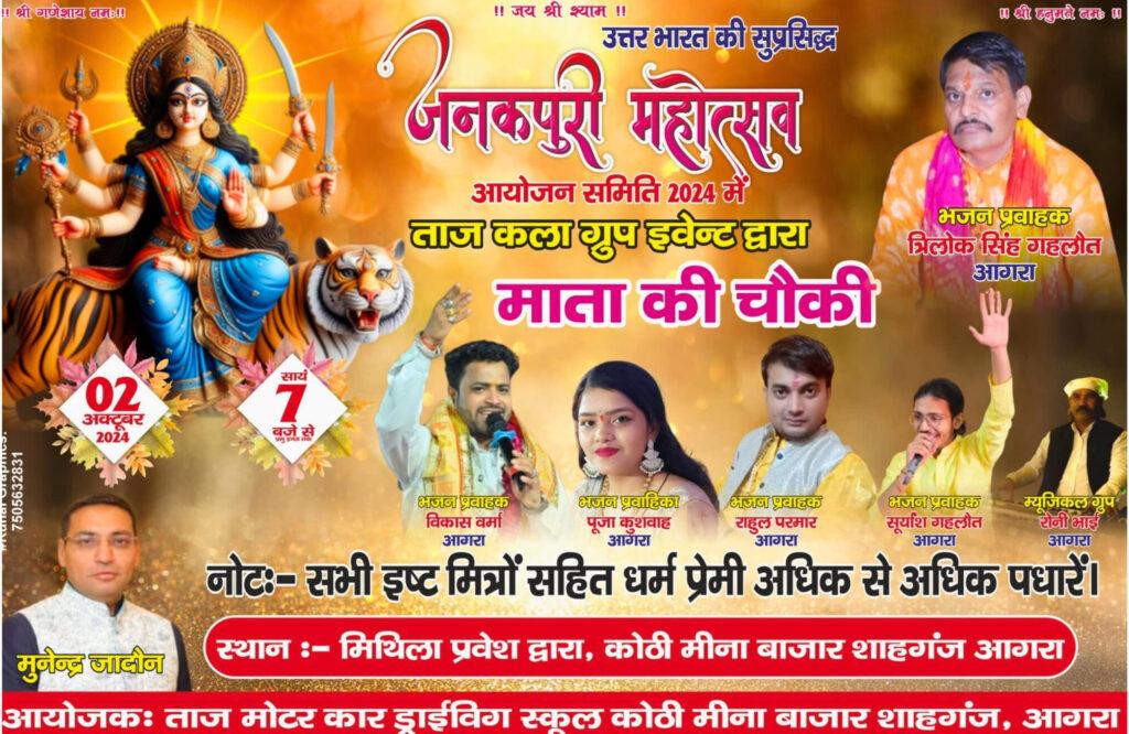 Taj Kala Group showcased devotional performances at Janakpuri 2024, held at the residence of Munendra Jadoun, featuring Mata Ki Chowki and Khatu Shyam Kirtan.