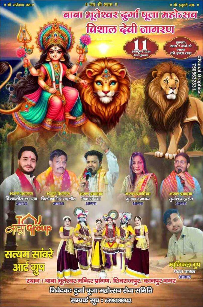 Taj Kala Group Events organized a grand Devi Jagran at Baba Bhuteshwar Mandir, Shivrajpur, Kanpur Nagar under the guidance of Durga Pooja Mahotsav Seva Samiti. The program was full of devotion and positive energy, and many people appreciated it as one of the best Jagran Party in Kanpur.
