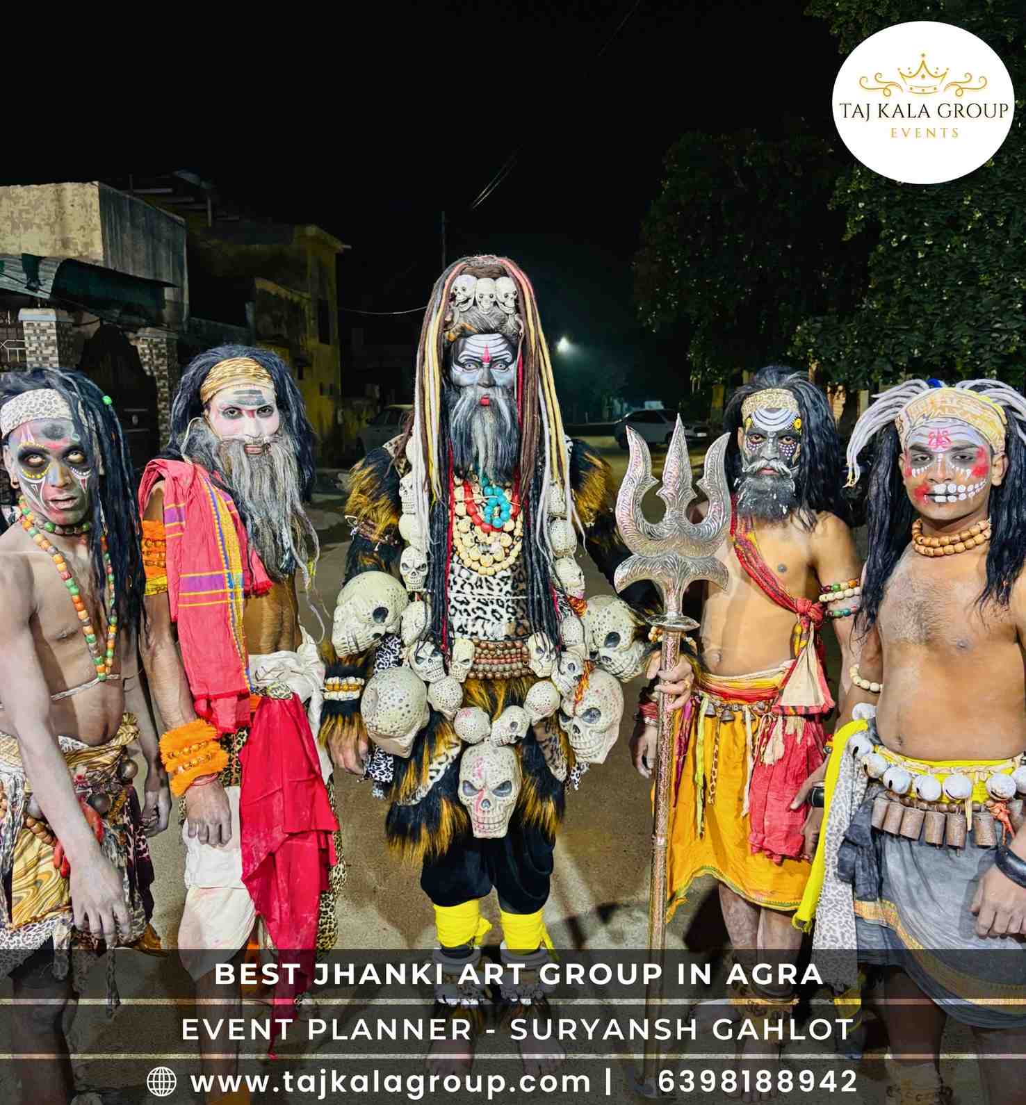 Taj Kala Group Events is one of the best Devi Jagran parties in Agra, known for devotional bhajan singers, the best Jhanki art group, and a high-quality sound system that creates a powerful spiritual atmosphere. With 25+ years of experience, we are a trusted event planner for Devi Jagran based in Agra, proudly serving all over India. The group is managed by singer Suryansh Gahlot and founded by singer Trilok Gahlot, whose guidance and musical excellence ensure well-organized, grand, and soulful Jagran programs. Our complete Jagran solutions make us a preferred Jagran party in Agra for devotional events.